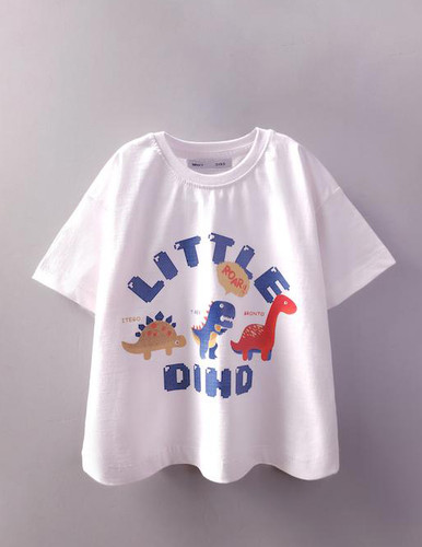 تیشرت سفید چاپدار (دخترانه و پسرانه) طرح 3 دایناسور -فونت برجسته- نخ و پنبه