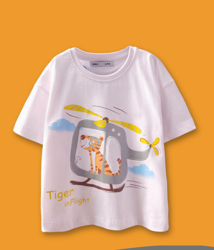 تیشرت سفید چاپدار (دخترانه و پسرانه) طرح هلکوپتر و ببر -فونت برجسته- نخ و پنبه