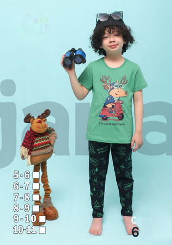 ست بلوز آستین کوتاه و شلوار راحتی (دخترانه و پسرانه) پنبه کش و بدون ایجاد حساسیت (jana) مدل گوزن موتور سوار