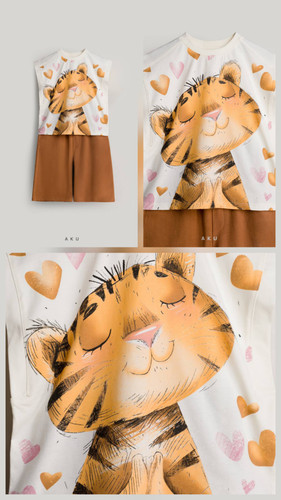 دو تکه چاپی تاپ شلوارک طرح ببری( دخترانه و پسرانه) آکو Aku