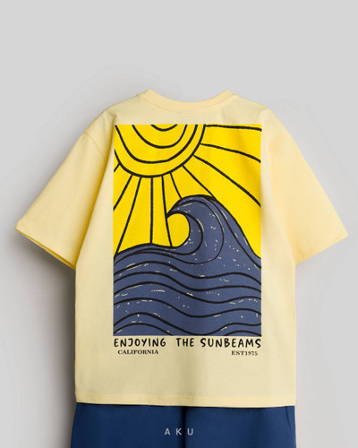 دو تکه چاپی تیشرت شلوارک طرح خورشید و دریا ( دخترانه و پسرانه) آکو Aku