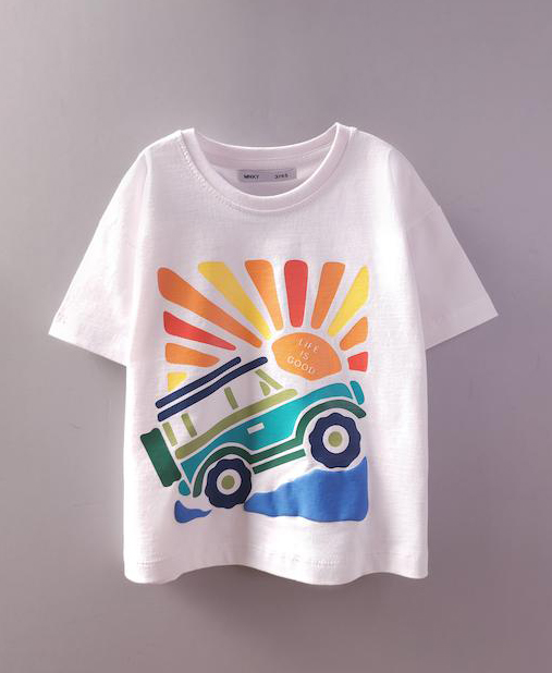 ناموجودتیشرت سفید چاپدار (دخترانه و پسرانه) طرح جیپ و صخره -فونت برجسته- نخ و پنبه