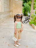 ست کراپ تاپ با شلوار بگ لینن دخترانه