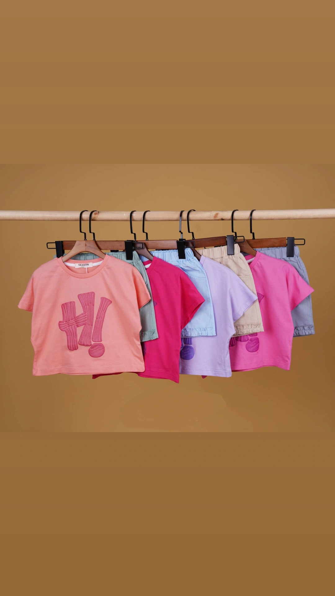 ست تیشرت کراپ با شلوارک لینن دخترانه