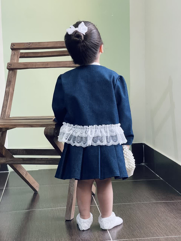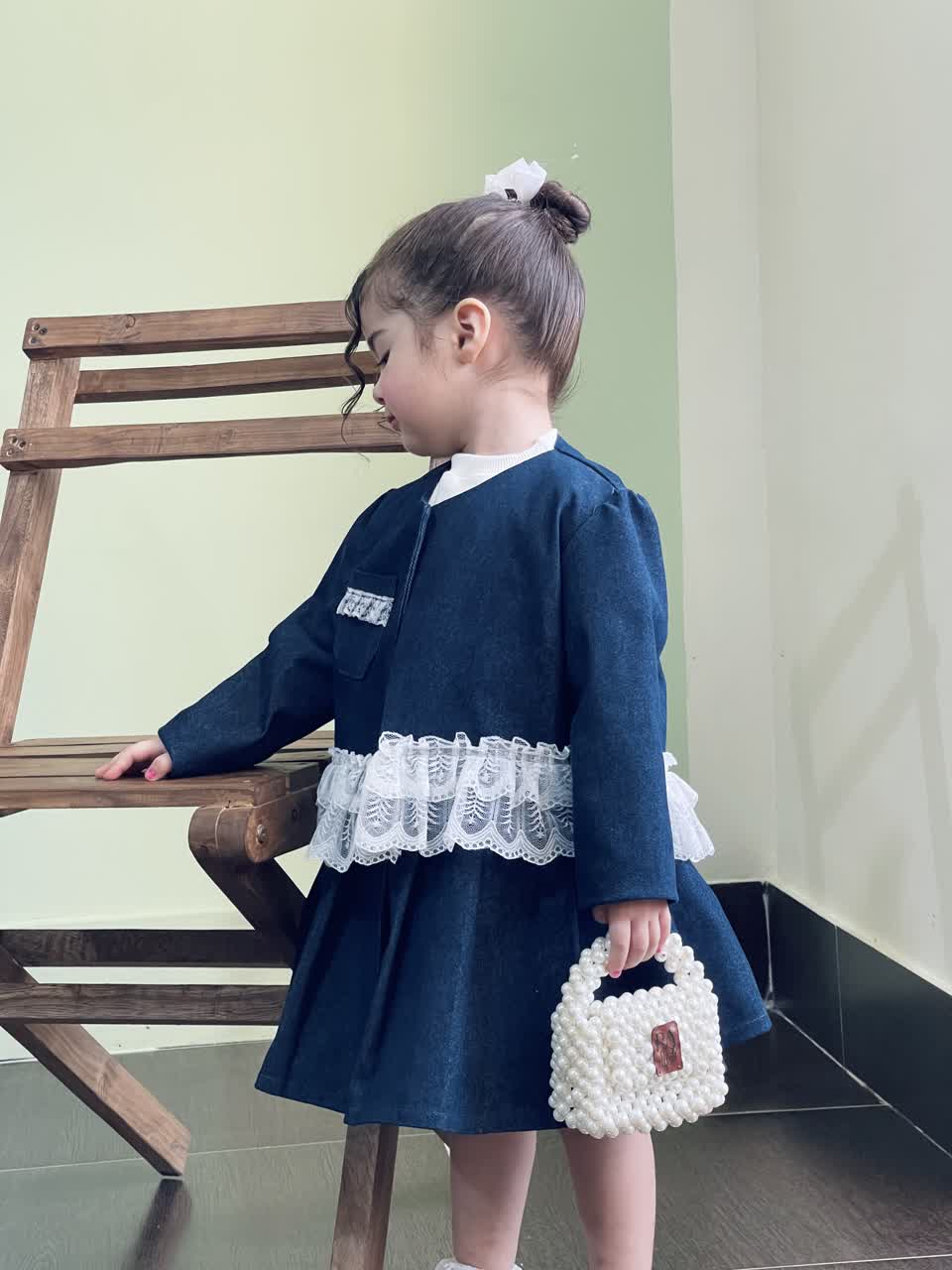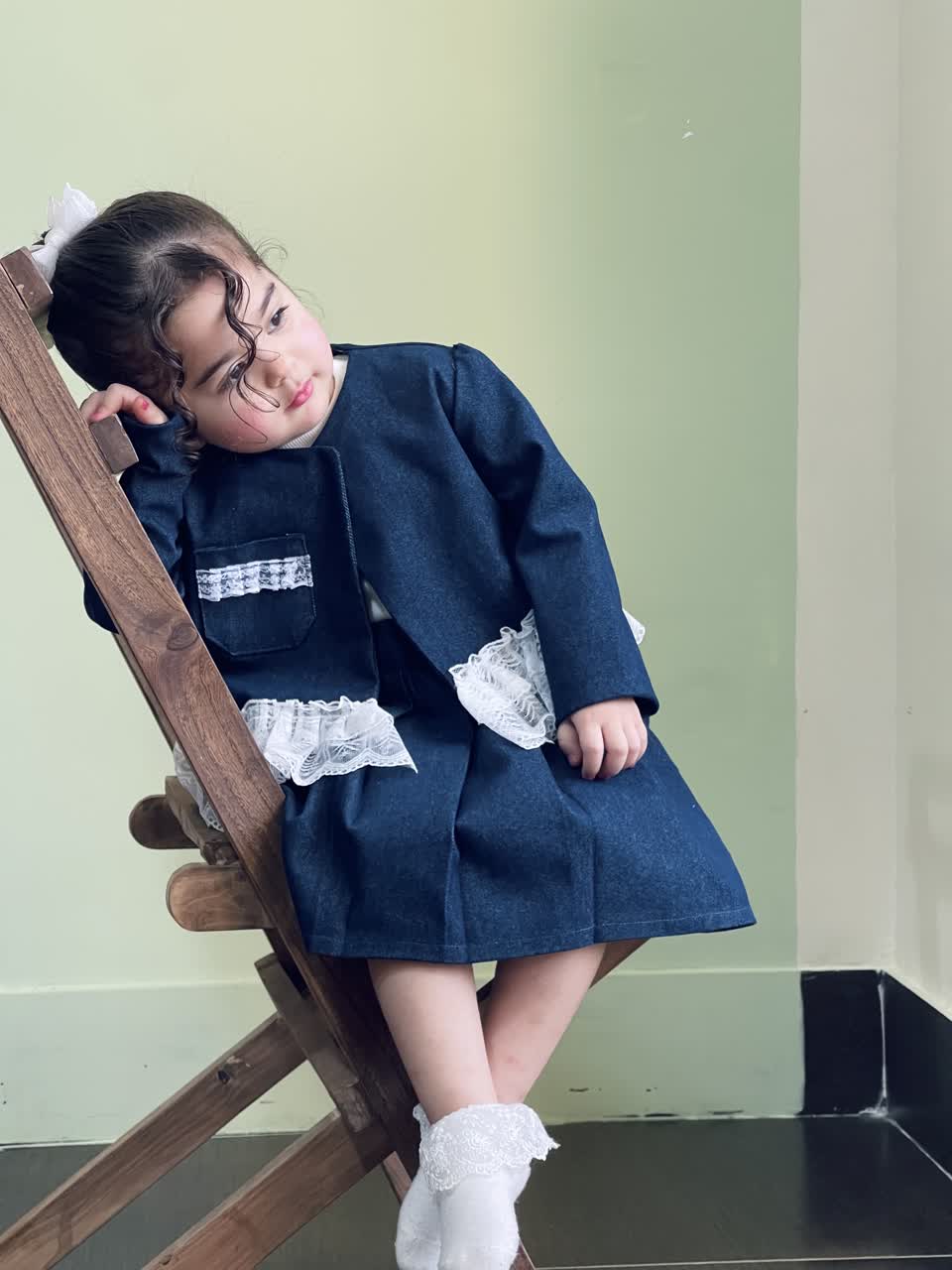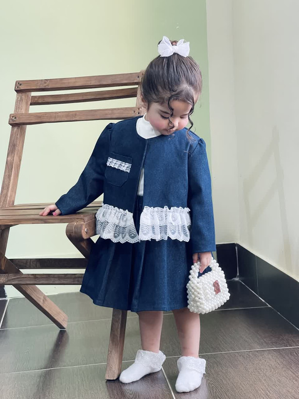 ست ۳ تکه کت و دامن جین +کراپ دخترانه (لباس عید دخترانه)