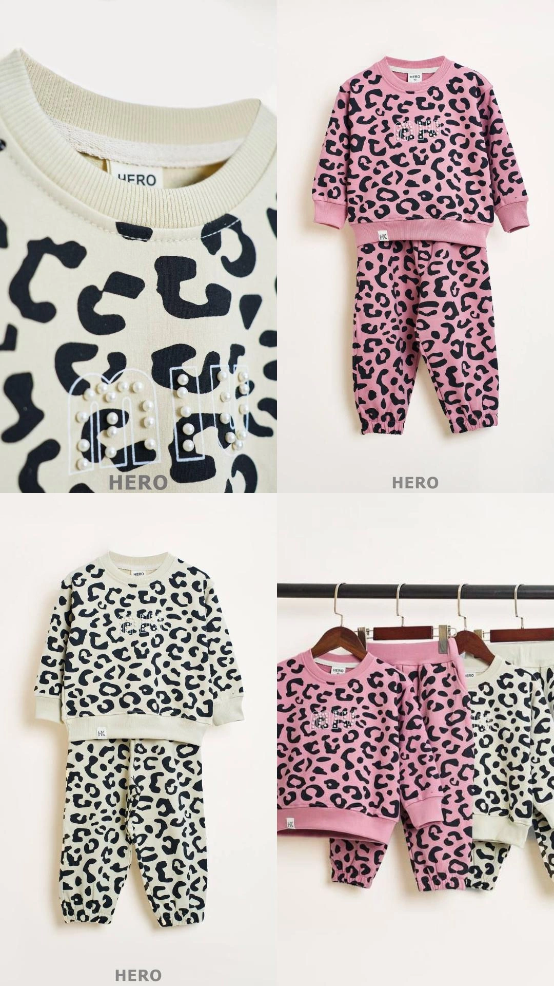 بلوز شلوار ست مدل پلنگی دورس ضخیم و کار شده مروارید دوزی دخترانه ترند
