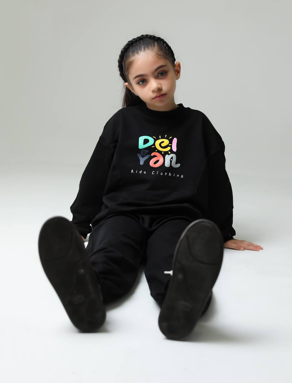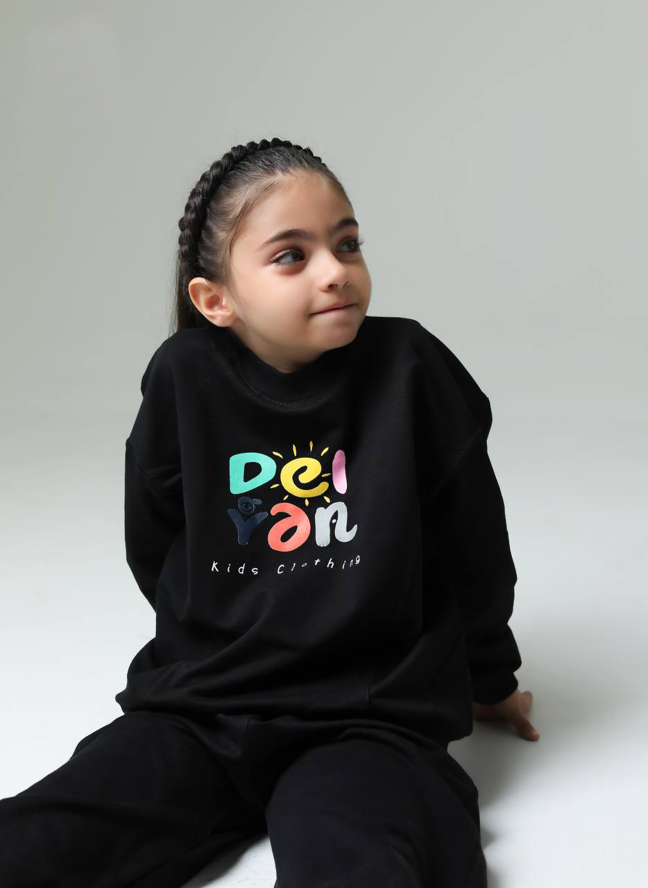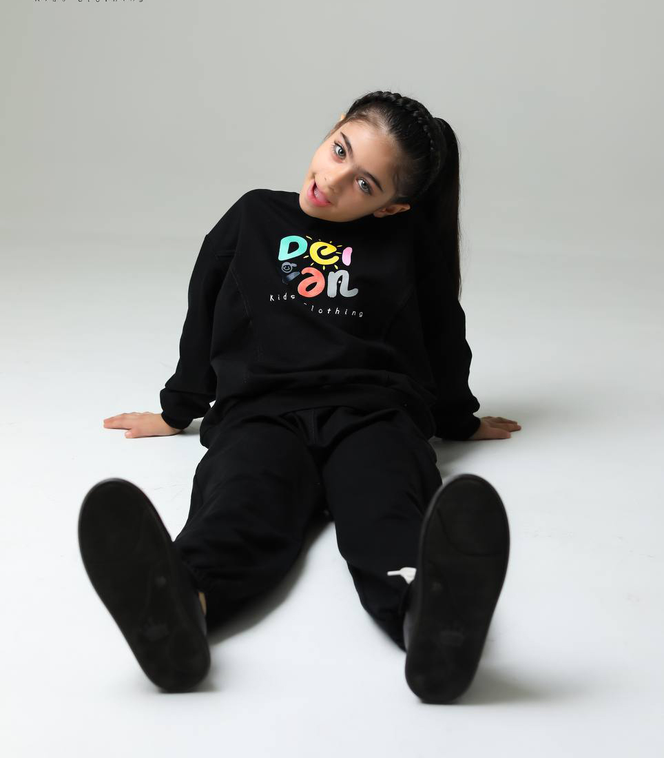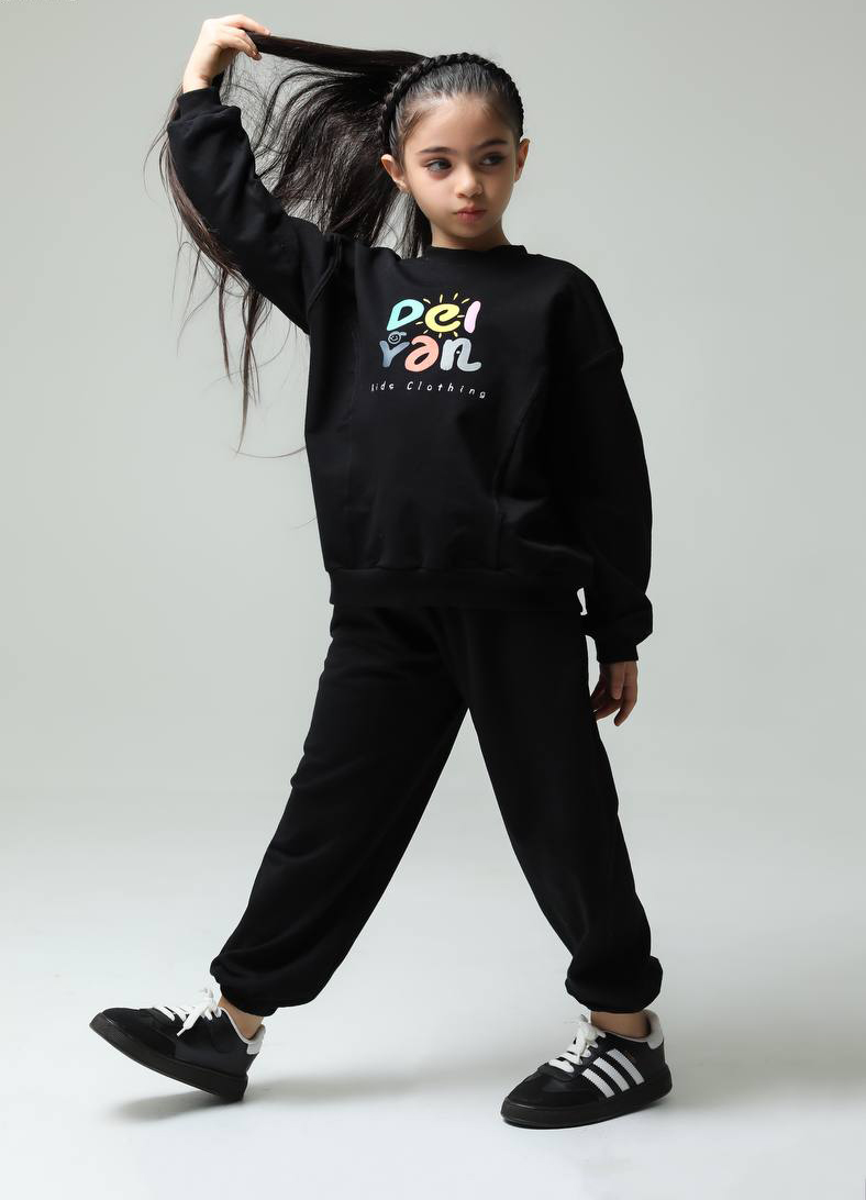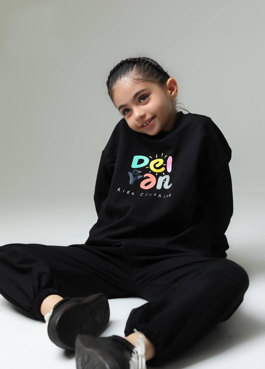 ست بلوز و شلوار دورس داخل کرک دخترانه مشکی با چاپ رنگی