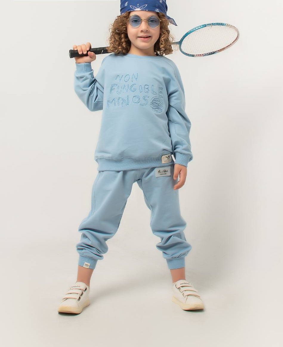 ست بلوز و شلوار (دخترانه/پسرانه) دورس 2نخ شیک گلدوزی فونت انگلیسی