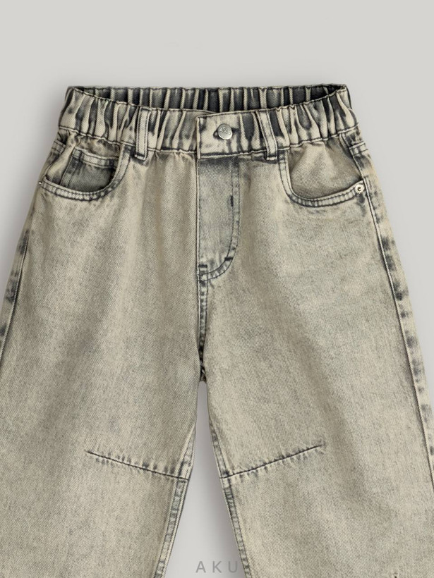 شلوار جین نیم بگ Aku (دخترانه/پسرانه) کاغذی و رنگ ثابت