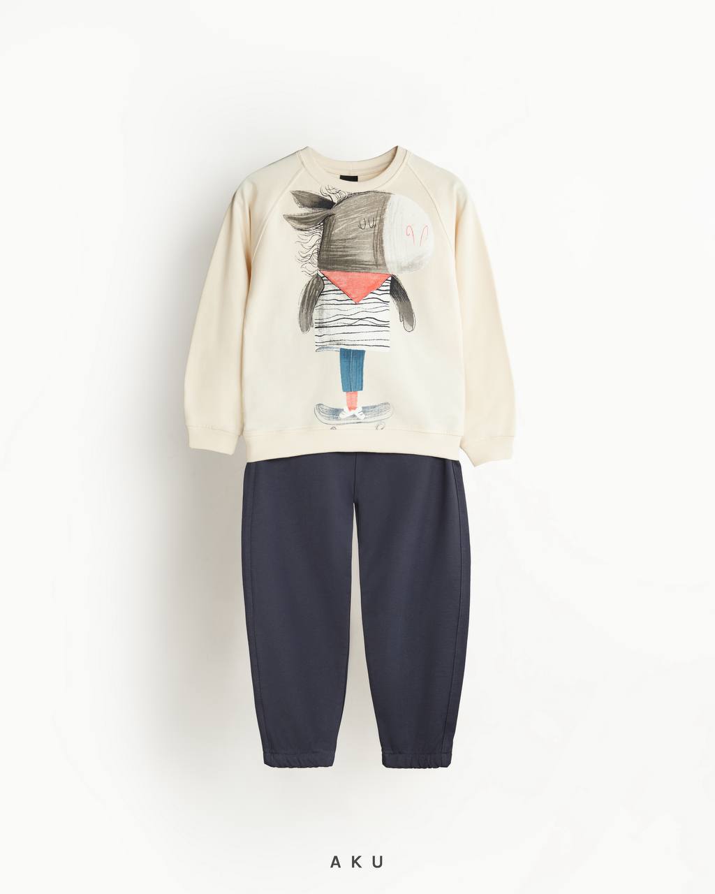 ست دو تیکه (بلوز و شلوار) چاپدار Aku بچه گانه ( الاغ و اسکیت برد)