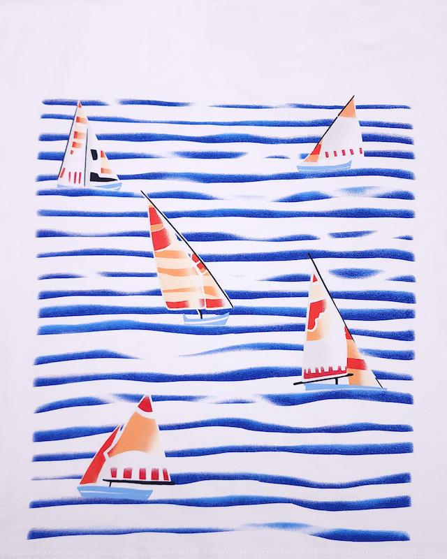 تیشرت سفید چاپدار (دخترانه و پسرانه) طرح قایق و دریا -فونت برجسته- نخ و پنبه