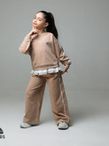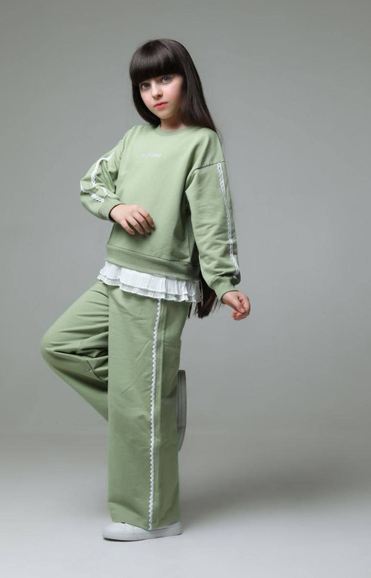 ست بلوز کراپ و شلوار دورس دونخ دخترانه دارای گلدوزی و خرجکار حریر پلیسه