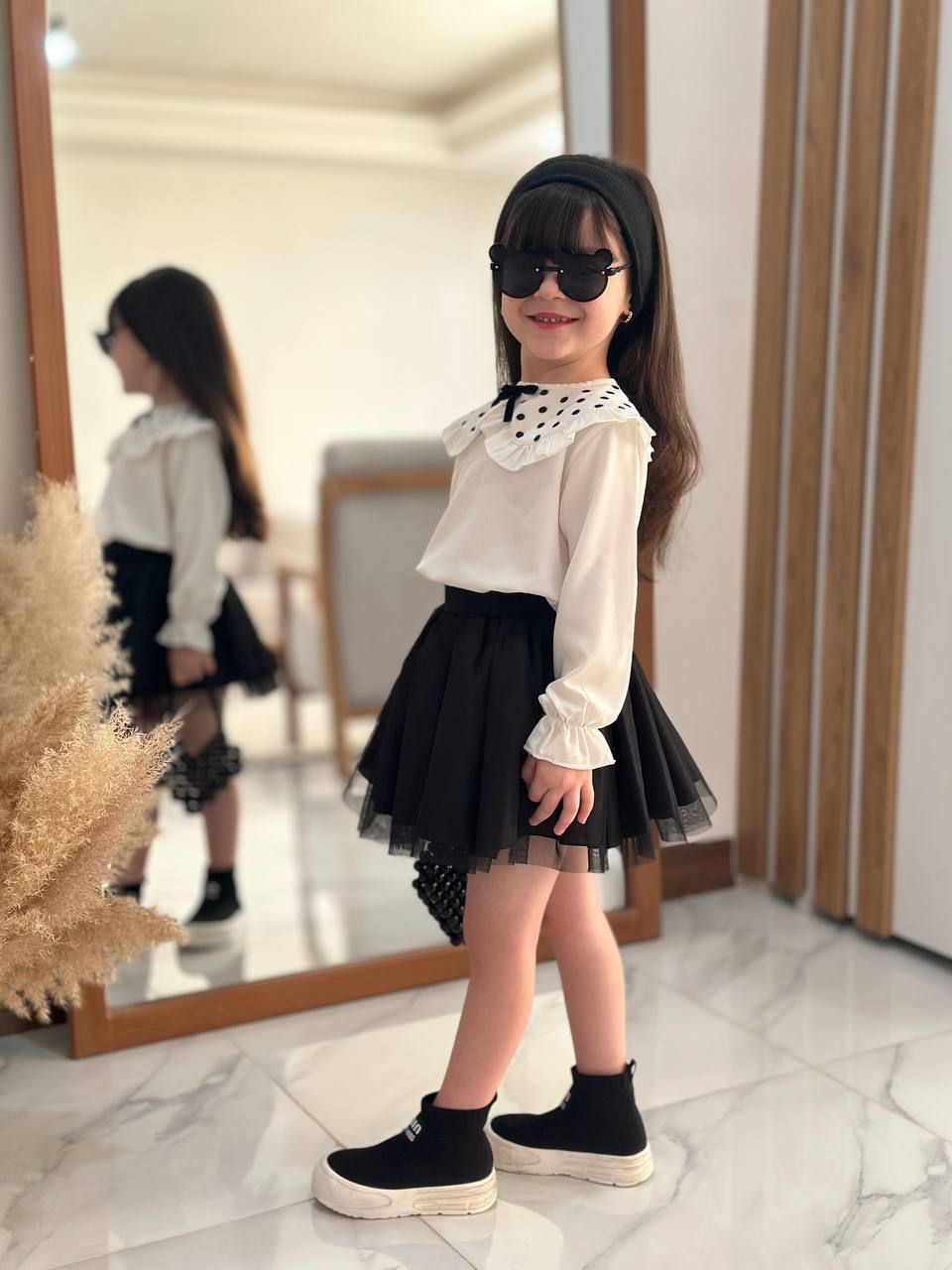 ناموجودست شومیز آستین بلند(پارچه کج راه بهاره) و دامن تور با آستر دخترانه (بچه گانه)